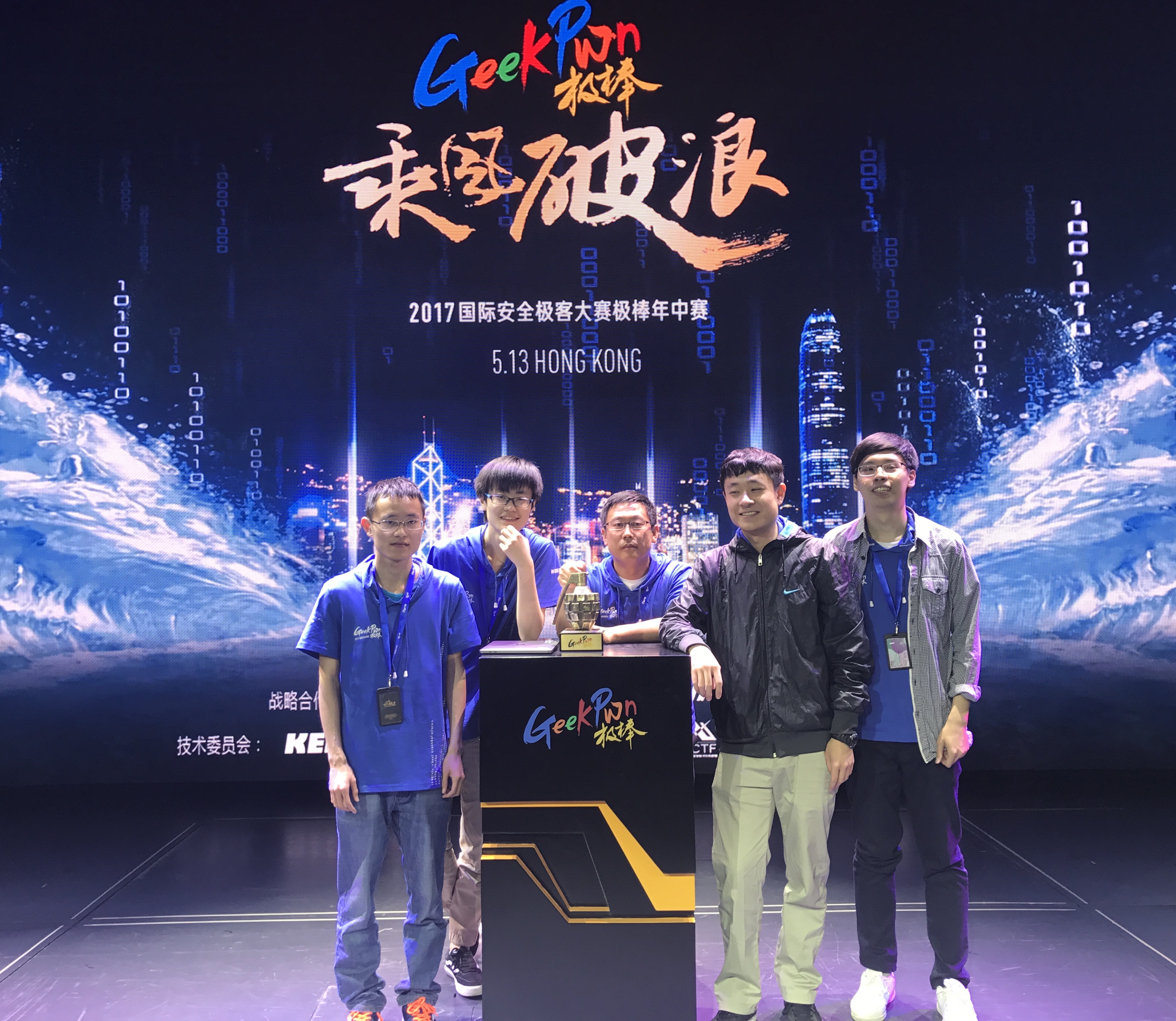 5月13日,2017国际安全极客大赛极棒(GeekPwn)年中赛在中国南海云顶梦号邮轮上举行。中国海洋大学信息安全实验室代表队攻破十个知名品牌的智能路由器,获100000元大奖,在十三支队伍中排名第二,并入选极棒名人堂。